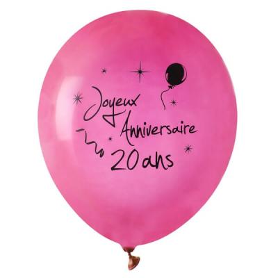 Ballon joyeux anniversaire fuchsia 20ans (x8) REF/4842