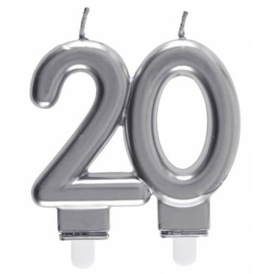 Bougie décorative pour gâteau d’anniversaire 20ans argentée métallisée (x1) REF/6931