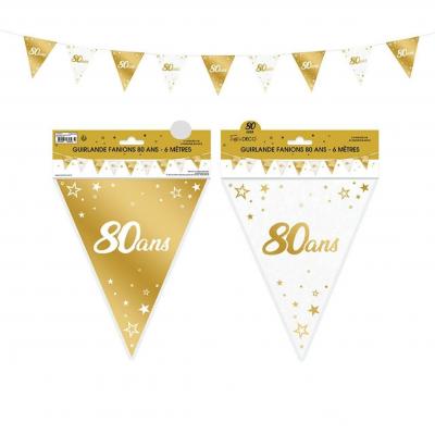 1 Kit guirlande fanion blanche et dorée or métallisée anniversaire 80ans (6m) REF/GFM00OR08