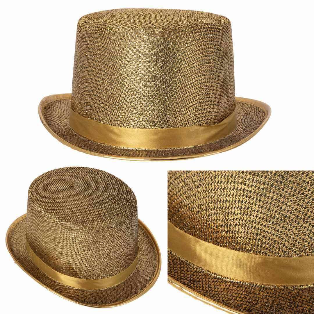 1 Chapeau or brillant: Haut de forme REF/24290 (Accessoire de déguisement adulte) Nouveau