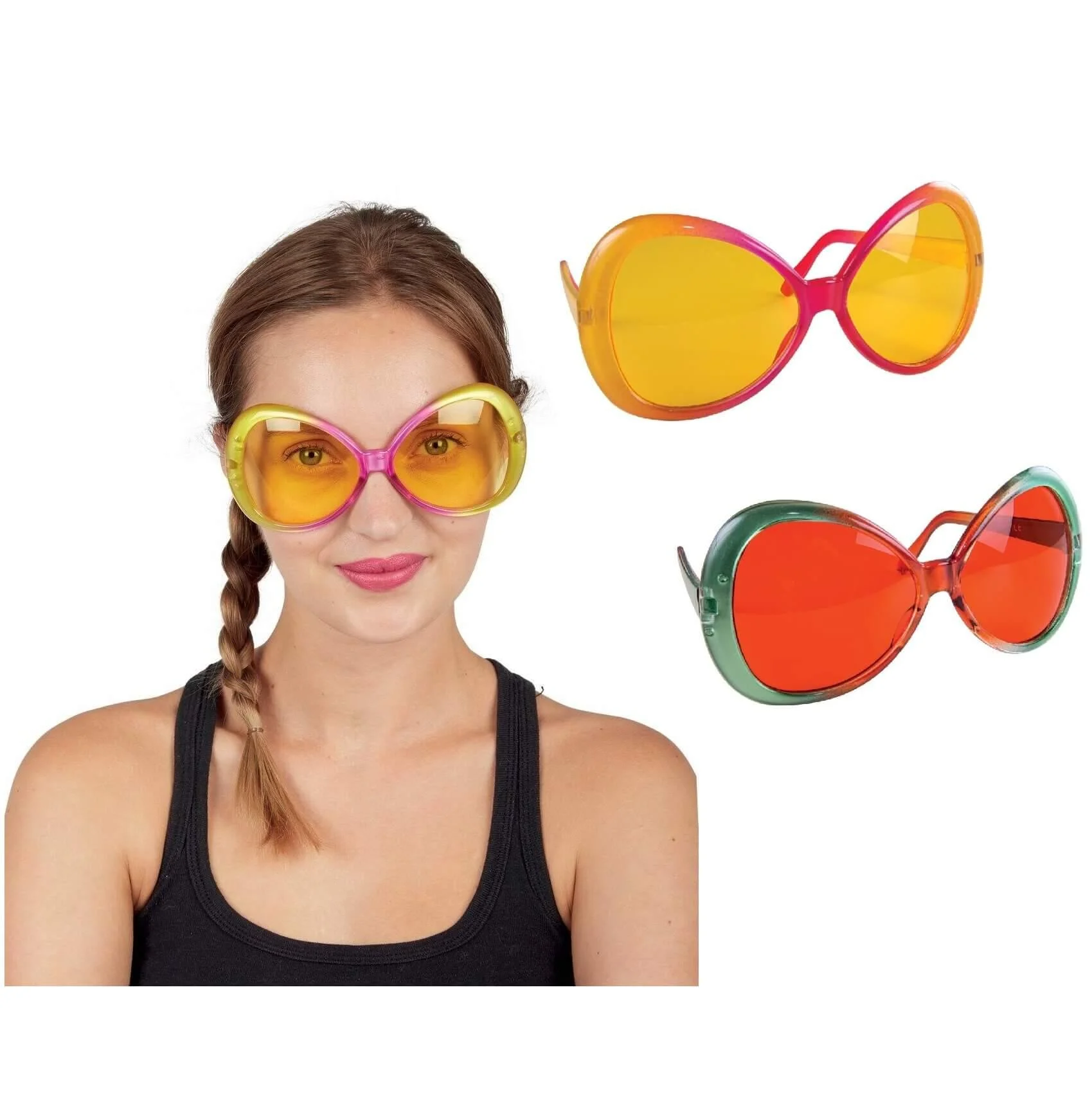 Complétez votre déguisement de fête en mettant cette paire de lunettes "mouche bicolore" avec ses couleurs pétillantes !