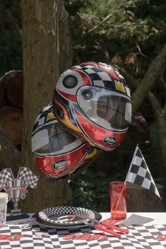 Créez une jolie mise en scène décorative dans votre salle en utilisant ce ballon alu "casque de circuit".
