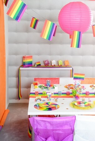 Voici une banderole avec les couleur de l'arc-en-ciel pour votre décoration de salle. Vous désirez crée une table coloré, pensez à la collection arc en ciel, avec ces couleurs vives.