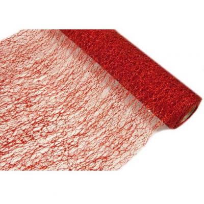 Chemin de table tulle métallisé rouge 28cm x 5m (x1) REF/TUN215