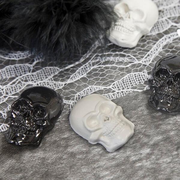 Crâne autocollant noir et blanc en résine (x8) REF/DEK0495 (Décoration de table Halloween)