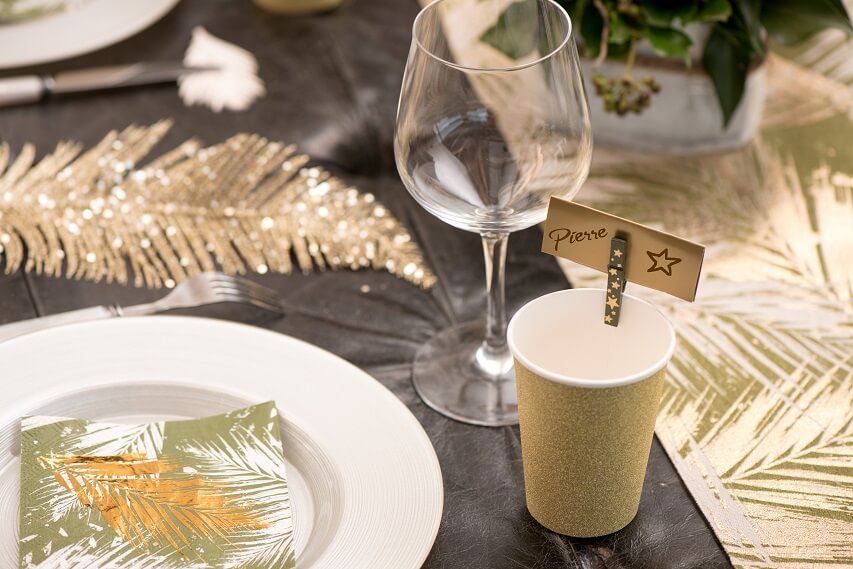 Pour la notation des prénoms de vos invités, voici un marque-place rectangle de couleur or.