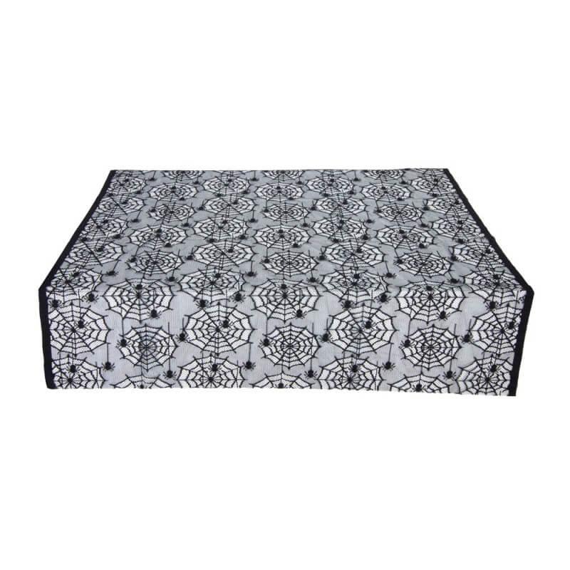 Disposez dans votre mise en scène lugubre et funeste durant la fête d'Halloween cette belle nappe dentelle noire en toile d'araignée.