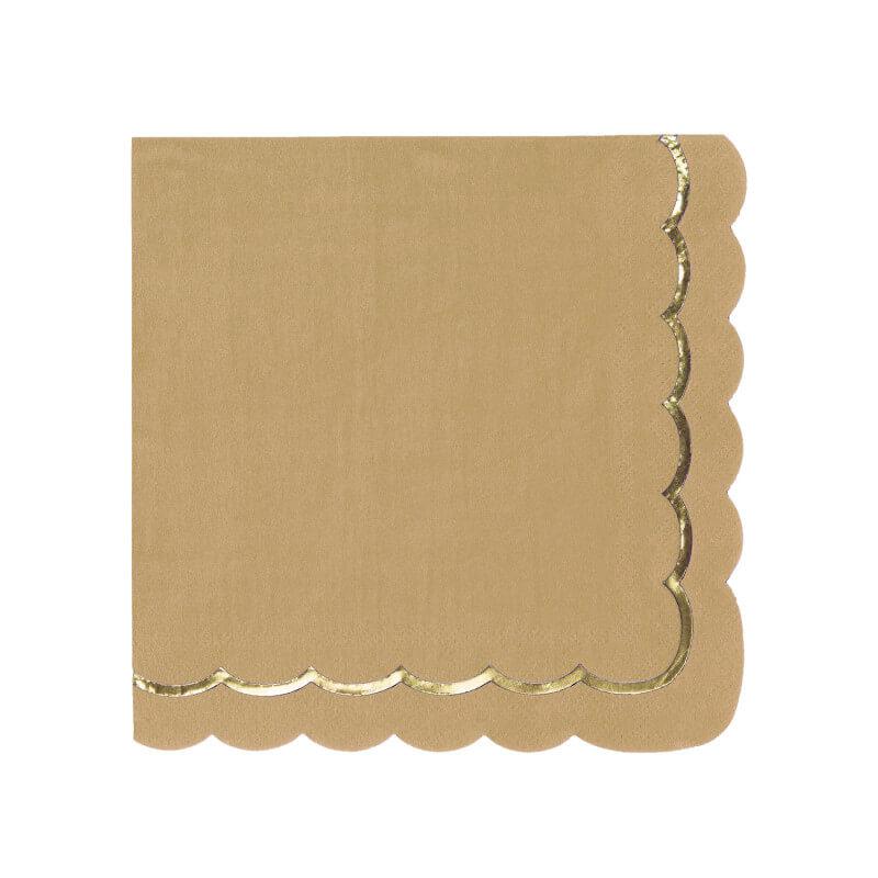 Serviette de table festonnée papier 3 plis (x16) Kraft/Or métal REF/913KRAS Nouveau
