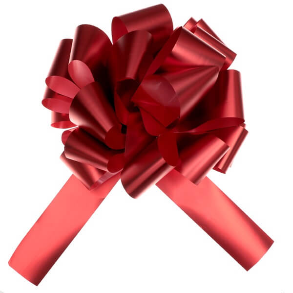 Voici un grand nœud à tirer automatique de couleur rouge métallisé pour faire des emballages de cadeaux comme pour noël, anniversaire…