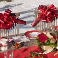 Voici un grand nœud automatique à tirer rouge pour faire vos emballages cadeaux de noël, d'anniversaire ou lors d'une fête.