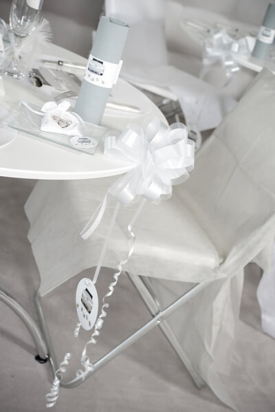 Avec ce joli noeud automatique de couleur blanc en matière tulle, vous allez pouvoir faire une décoration de voiture, table ou emballage de cadeaux.