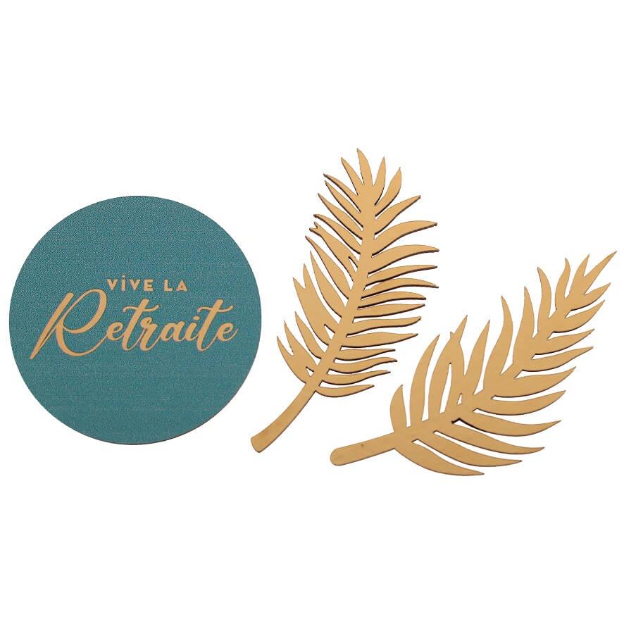 Centre de table en bois vive la retraite (27cm) Or métallique REF/9483 Nouveau