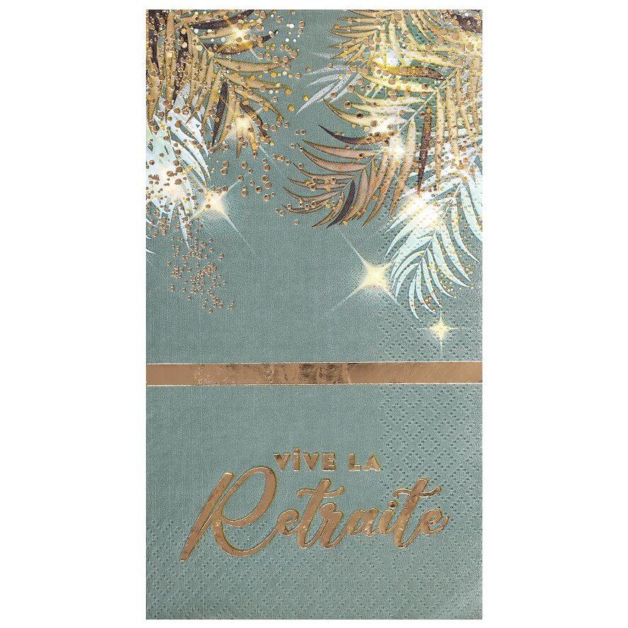 Serviette cocktail papier 3 plis vive la retraite (x12) Céladon/Or métal REF/9376 Nouveau