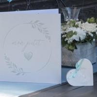 Vos invités pourront laisser des mots doux et agréables qui seront à lire à travers ce sublime livre d'or bleu ciel "mon petit coeur".