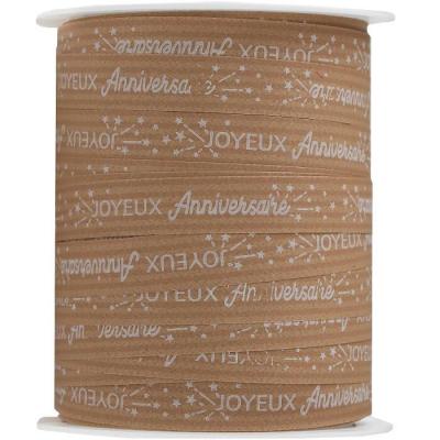 Bobine ruban bolduc joyeux anniversaire Kraft 25m x 10mm (x1) REF/6774