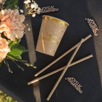 20 Pailles jetables en papier kraft naturel et étoile dorée or métallisée REF/5667