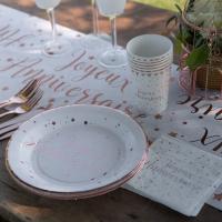 Assiette joyeux anniversaire rose gold et blanche (x10) REF/5670