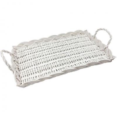 Voici un joli plateau rectangulaire en matière Saule de couleur blanc en location où vous allez pouvoir y mettre des décorations, pains, viennoiseries ou des confections de gourmandises comme des dragées, chocolats ou bonbons lors de votre jour de fête : mariage, anniversaire, Baptême, Communion…