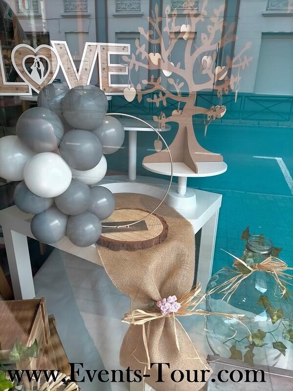 Décorez votre table de mariage avec élégance en utilisant cette lettre lumineuse à LED « love » en matière bois de couleur blanche et naturelle, les piles sont incluses dans cette location.